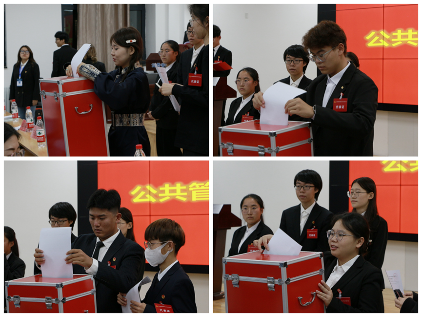 选举环节中,与会代表充分行使民主权力,依据《大会选举办法》,通过无记名投票方式选举产生太阳集团tyc5997新一届学生会主席团和研究生会主席团及tyc5997太阳集团第二十九次校学生(研究生)代表大会正式代表。总监票人王紫薇宣读选举结果。