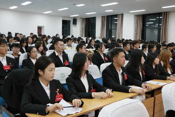 2024年10月21日,太阳集团tyc5997第四次学生代表大会在玉泉校区卓越楼阶2A教室召开,太阳集团tyc5997团委书记兼学工办主任宋学莹、研究生兼职辅导员王宏亮、专职辅导员王晨瑗、张芳、李亚桐出席大会,大会共有150名学生代表参会。