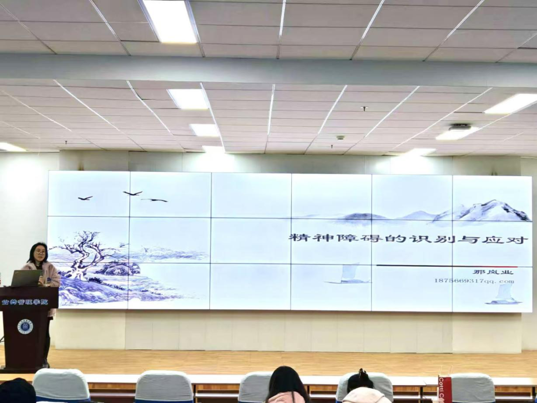 本次培训通过讲述什么是抑郁症、强迫症,焦虑症、双向情感障碍,让同学们认识了心理疾病。那岚业老师通过讲述精神障碍的识别与应对、心理正常与异常的区分等知识,提醒大家积极关注身边同学,对存在心理问题的同学予以关心和帮助。