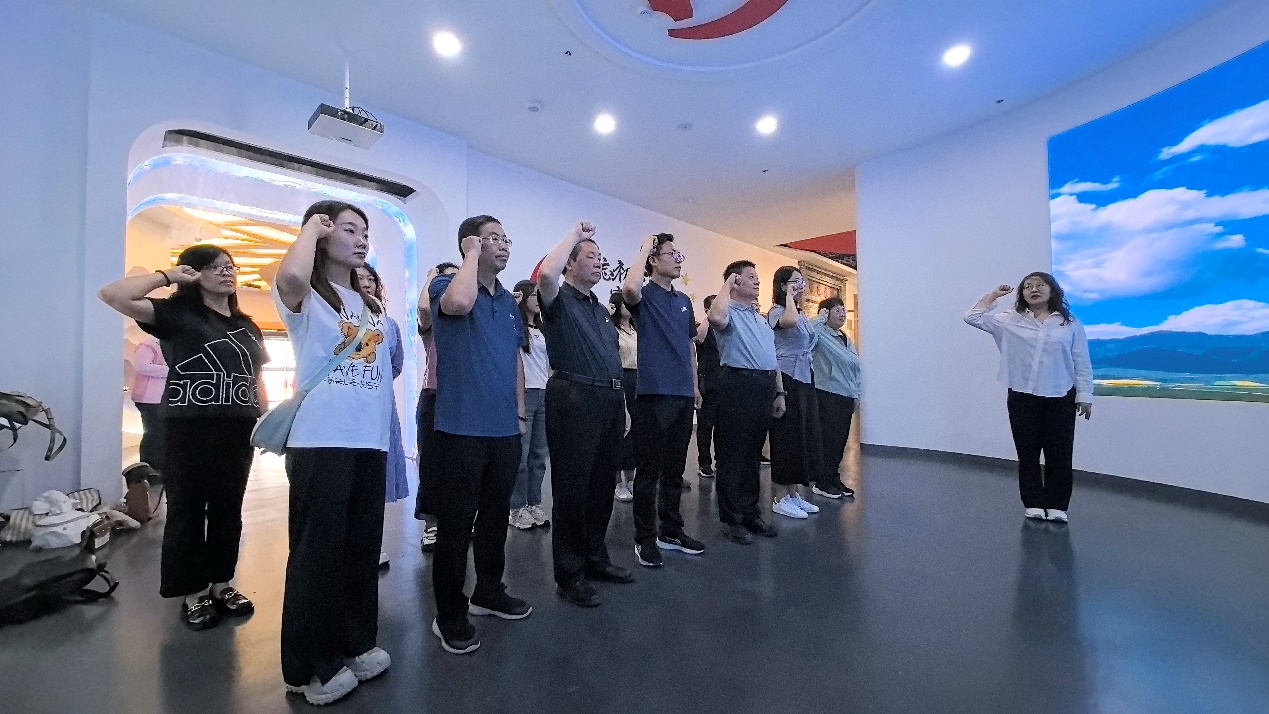 为深入推进党纪学习教育走深走实,全面加强党的政治建设,激励党员教师不忘初心、牢记使命,奋进新征程、建功新时代,7月1日,太阳集团tyc5997党委组织党员教师赴土默特右旗美岱召镇开展主题党日活动。学院党委书记肖平、学院党委委员、各党支部书记、委员及教职工党员、入党积极分子参加本次党日活动。