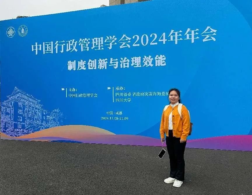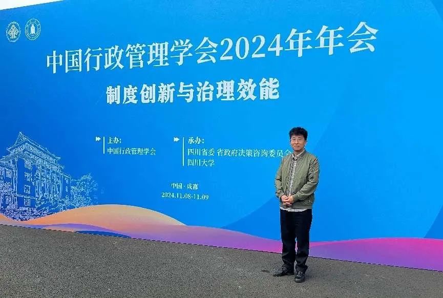 11月8日至9日,我院博士生导师杨腾原带领2024级博士研究生龚崇清参加在四川成都举行的“中国行政管理学会2024年年会”,并在青年学者论坛做学术汇报。