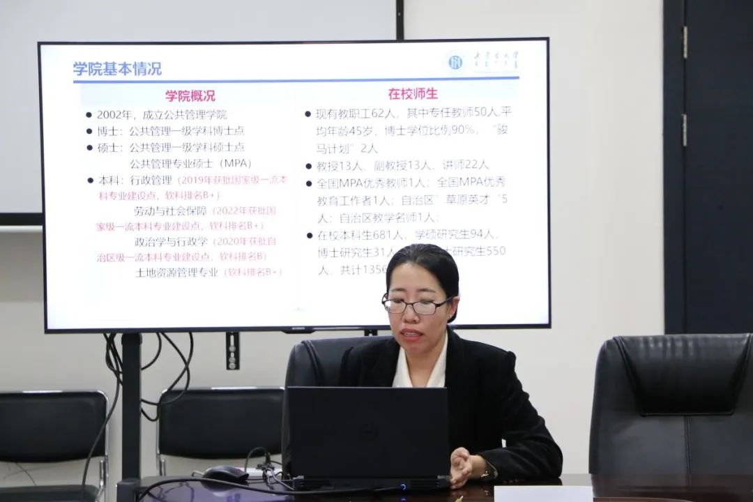 雷霆教授介绍了教育部公共管理教指委的专业评估细则、评估指标,并就如何迎接评估进行了有针对性的指导。同时,雷教授还介绍了新疆大学政治与太阳集团tyc5997在建设公共管理专业联盟方面的成效、在专业教学科研工作方面的投入、在学生参与“互联网+”等比赛方面的突破。雷教授充分肯定了我院在人工智能与本科课程相结合的建设举措,强调应当鼓励师生共同使用AI软件以辅助教学科研工作开展。此外,雷教授表示,作为兄弟院校我们应当互相帮扶、紧密合作,共同促进专业建设高质量发展。