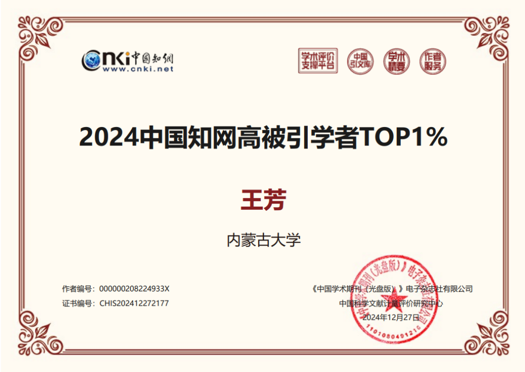 据悉,“中国知网高被引学者”遴选活动旨在客观、科学衡量并表彰近十年来国内科研成果丰富、学术影响力杰出的学者群体。经过定量数据统计、遂选方案评审、学科专家调研等前期筹备工作,现已形成“2024中国知网高被引学者”预发布名单。我院入选的4位教师在《管理世界》《民族研究》《新华文摘》等顶级期刊均有论文发表,在相关学科具有良好的学术声誉,他们的入选彰显了我院公共管理学一级学科的科研优势和学术影响力。