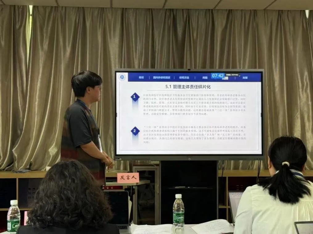 在分论坛八“养老服务改革与普惠养老”现场,我院劳动与社会保障专业本科生高云飞分享汇报“三位一体医养结合问题、成因及对策分析”,他通过运用政策文本分析法,指出当前“三位一体”医养结合模式存在功能定位模糊、“多头管理”与“多头不管”、供需不匹配等问题,主要原因包括管理责任碎片化、政策执行不力和发展阶段限制;并提出转变观念定位功能、加强立法监督、健全供给体系等对策。
