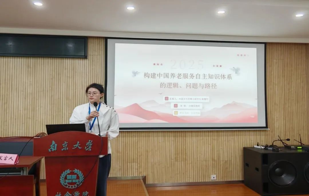 在分论坛一“中国式养老的内涵与特征”现场,我院博士生针翔宇分享汇报“建构中国养老服务自主知识体系的逻辑、问题与路径”,认为养老服务自主知识体系是中国特色哲学社会科学自主知识体系的组成部分,对积极应对人口老龄化、推动养老服务高质量发展具有重要的理论意义和实践价值,建构中国养老服务自主知识体系具备完整的理论逻辑、历史逻辑和现实逻辑。中国养老服务知识发展脉络表明,自主的概念、自主的理论、自主的方法是建构中国养老服务自主知识体系的关键问题与重要抓手。立足中国国情,应通过养老服务学科体系、养老服务学术体系、养老服务话语体系的建设,建构起既符合我国实际,又具有国际影响力的中国养老服务自主知识体系,引导、规范和服务蓬勃发展的养老服务事业。