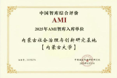1.内蒙古社会治理与创新研究基地成功入选中国社会科学评价研究院“中国智库综合评价研究项目(2025)”AMI智库入库名单。