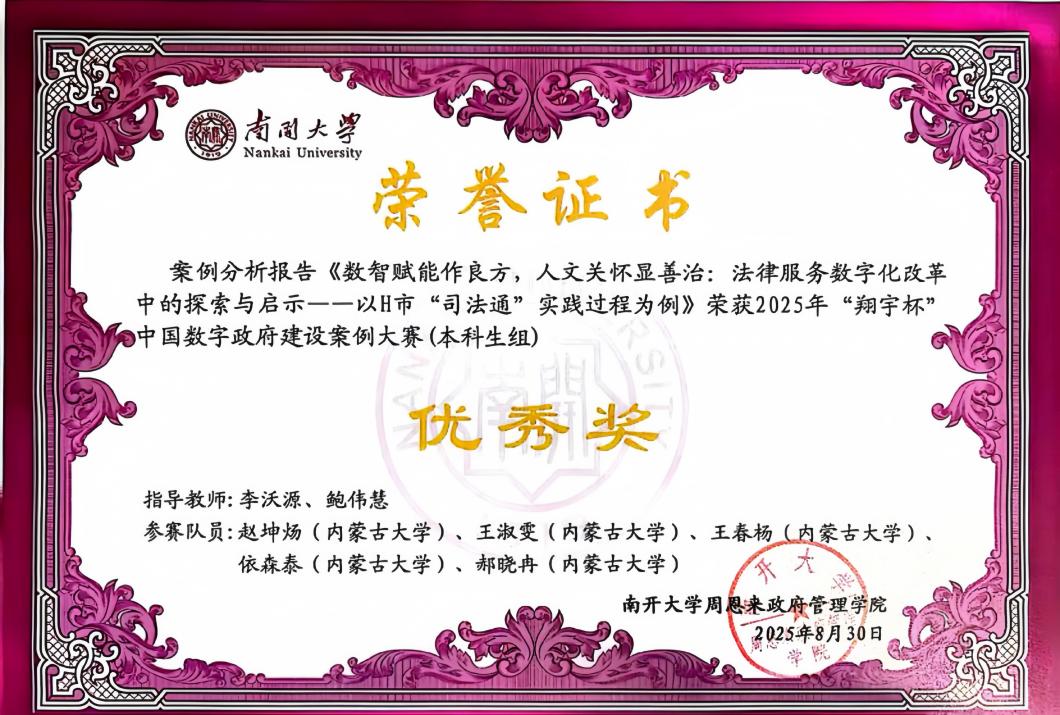 2.2位教师获2025年内蒙古自治区自然科学优秀青年基金项目,1位教师获2025年内蒙古自治区“高等学校青年科技人才发展项目”,1位教师被评选为2025年度内蒙古自治区青年创新人才,1位教师当选内蒙古自治区经管类教指委委员。