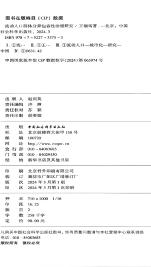 日前,中国社会科学出版社2024年出版我院王瑞雪博士的学术著作《流动人口群体分异包容性治理研究》,全书约25.8万字。