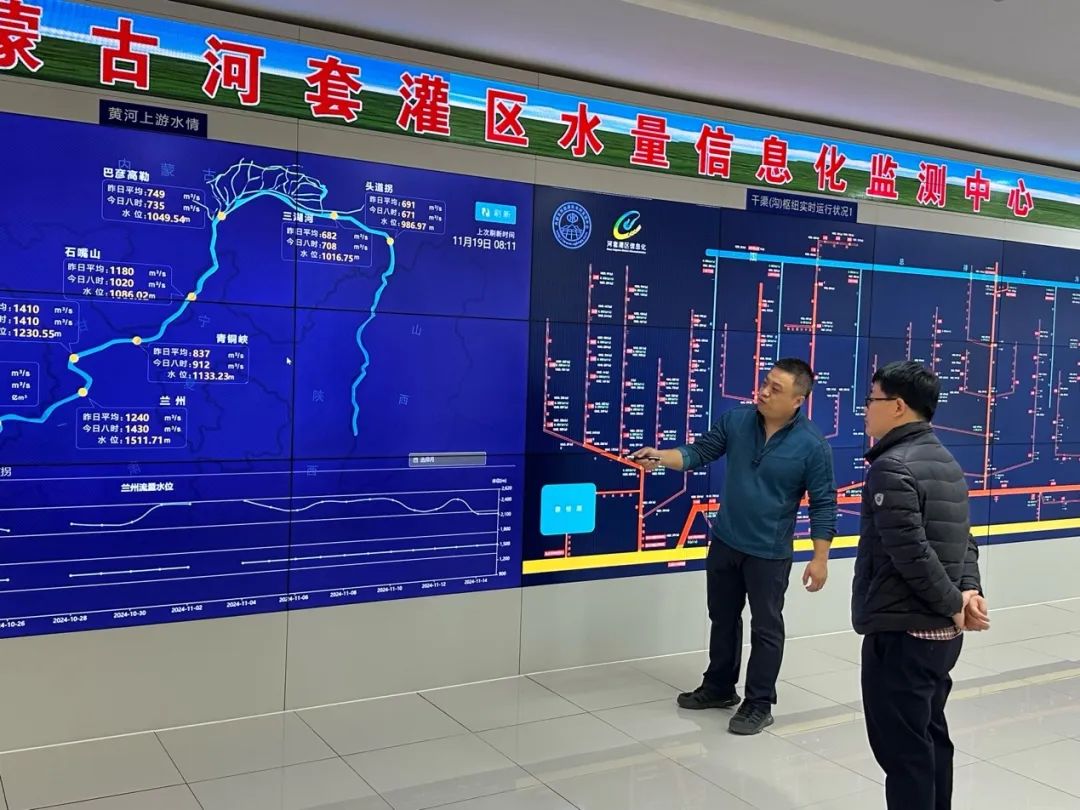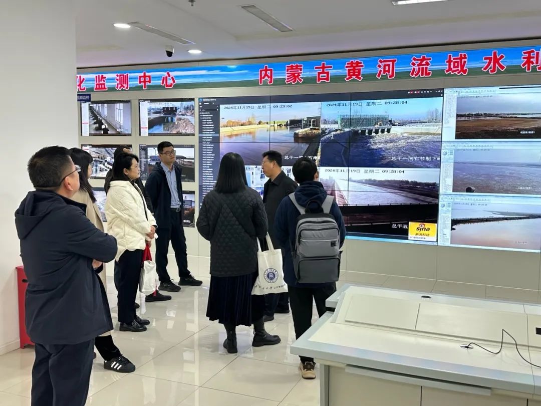 19日上午,师生一行参观了河套灌区水量信息化监测中心,结合沙盘、屏幕,在工作人员的介绍下了解了数字赋能水量精准调度过程以及数字孪生灌区建设情况,深刻学习和领会了习近平总书记强调的“河套灌区灌溉工程是千年基业,花了很大功夫,也很值得。要继续完善提升,提高科学分水调度水平。同时要量入为出,建立多元化投入机制,尽可能调动社会力量参与”的重要指示精神。