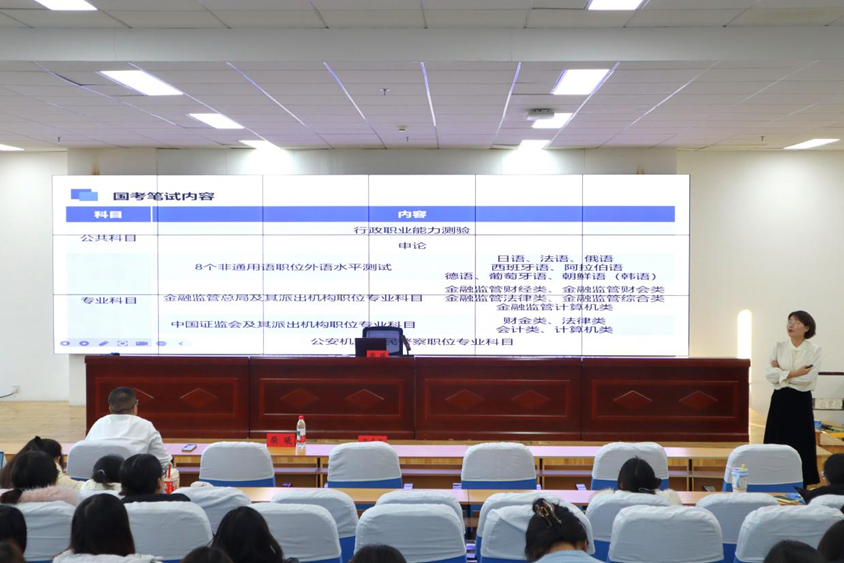 随后,柴曦老师结合数据与政策,系统梳理了学院各个专业的就业方向,围绕国考、省考、事业单位、基层项目、国央企等单位招考方向,系统梳理了全年考编和就业的备考内容以及时间进程,并解析了从招聘公告发布到录用全过程的准备事项,就简历撰写与面试礼仪方面也分享了实用技巧。
