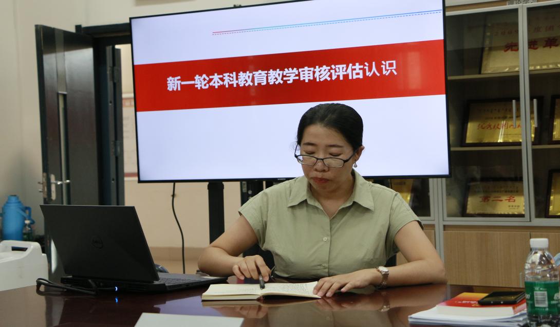 李沃源副院长首先分享了对新一轮本科教育教学审核评估的认识。深入解读了审核评估指标体系,涵盖方案的设计思路、核心要求以及本科评估方案的类型等内容。她指出,我们要明晰方案设计思路,牢牢掌握指标体系中的核心要求,包括坚持立德树人成效是检验学校一切工作的根本标准、突出坚持党的全面领导和突出教育教学改革、坚持学生中心、产出导向和持续改进三个理念;此外,强调与前一轮审核评估相比,新一轮本轮教育教学评估在评估导向、评估内涵、评估类型、评估方法以及评估功能五个方面的变化。重点介绍了我校的评估类型,加大本校本科评估类型的宣传力度,以便更好地迎接审核评估。最后,李沃源副院长对内蒙古科技大学的整个评估过程及经验进行了介绍,包括自评自建、线上评估、入校评估、反馈结论、限期整改和督导复查等六个环节。