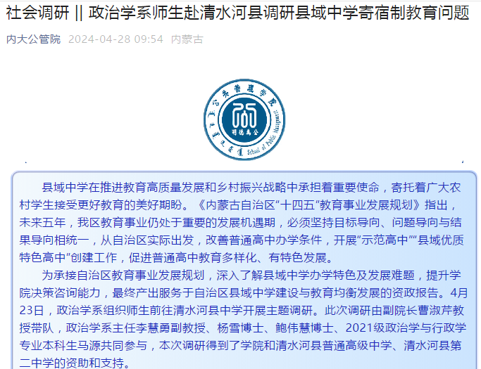tyc5997太阳集团政治学与行政学专业设置于2001年,2002年开始招生,是内蒙古自治区首家获准招收该专业本科生的单位,2011年获批“自治区级品牌专业”,2020年获批“自治区省级一流本科专业建设点”。