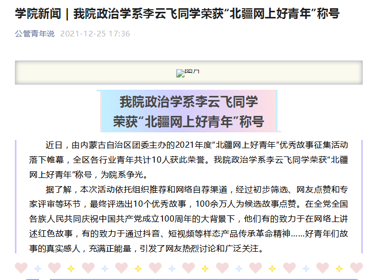 在学院的关怀和支持下,在政治学系老师们的指导以及2020级政治学与行政学同学们的共同奋斗下,2020级政治学与行政学专业毕业生目前在升研、考公以及就业等多方面取得佳绩:5位同学保研至985及211高校深造;12位同学成功考取211高校硕士研究生,其中3位同学升学至985高校;国考以及事业单位招录创历史新高,3位同学国考国家税务局、公安机关上岸、2位同学政法选调上岸、1位同学内蒙古广电局事业编上岸;教师招考也取得了佳绩,共有10位同学被鄂尔多斯、包头等教育局录取;还有10位同学已经在中铁十二局、中国能建、路尚集团呼和浩特分公司、陕西高途公司、北京少年儿童图书出版社、鄂尔多斯市晶澳太阳能科技有限公司、招商银行股份有限公司信用卡中心等企业找到心仪的工作。
