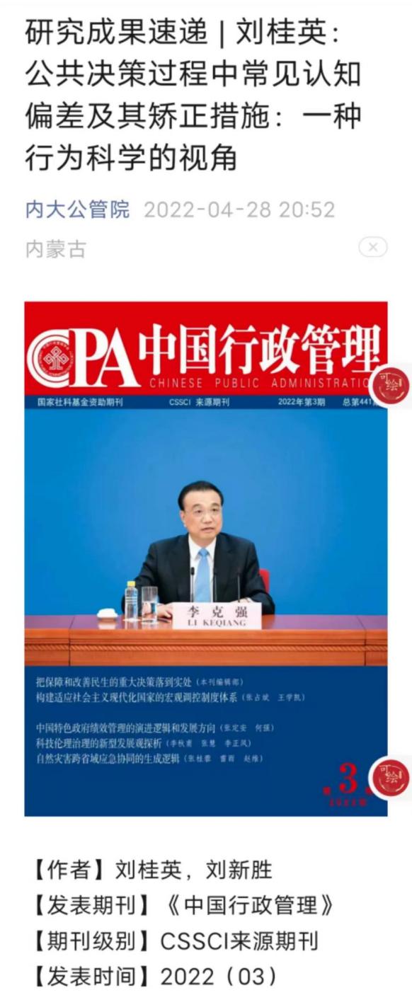 刘桂英,毕业于中国政法大学,博士、副教授、公共管理学术研究生和MPA研究生导师 。主要研究方向为基层治理、公共政策、政治社会学。先后在《中国行政管理》《上海行政学院学报》《自然辩证法研究》等AMI权威期刊、CSSCI来源期刊及《河北大学学报》《天津行政学院学报》等北大核心期刊发表10余篇学术论文,2篇被人大复印资料全文转载。出版专著1部,主编国家级教材1部,主持省部级项目2项,参与多项国家社科基金项目和政府委托项目。为首届全国公共管理硕士专业学位“在线优质课”团队骨干成员、内蒙古人大工作研究会个人理事,内蒙古社会治理与创新研究基地研究员。
