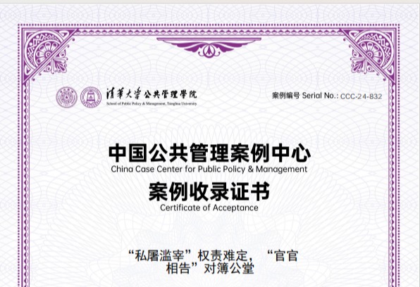 近日,我院2022级政治学与行政学专业王亚楠、郝帅、张思婷、刘桓彤等同学在张彬副教授指导下撰写的《“私屠滥宰”权责难定,“官官相告”对簿公堂》案例,经过严格评审被清华大学中国公共管理案例库正式收录,这是我院首次由本科生团队撰写的案例被国内最具影响力的案例库收录。该案例选题源自团队对城市治理中典型“权责交叉”问题的敏锐洞察和线索追踪。2024年初,王亚楠等同学从新闻报道中敏锐地捕捉到了这一具有研究价值的...